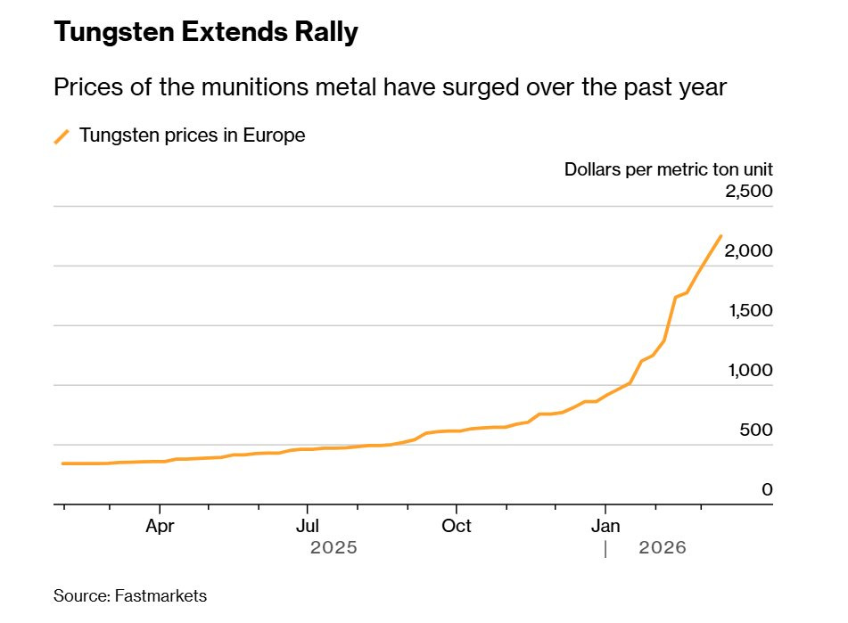 Ngày 01/04/2026, giá Tungsten APT đạt 2.495 USD/MTU — mức cao nhất mọi thời đại. Chỉ trong 3 tháng đầu năm, giá kim loại này tăng lần lượt 25%, 34% và 44% mỗi tháng.