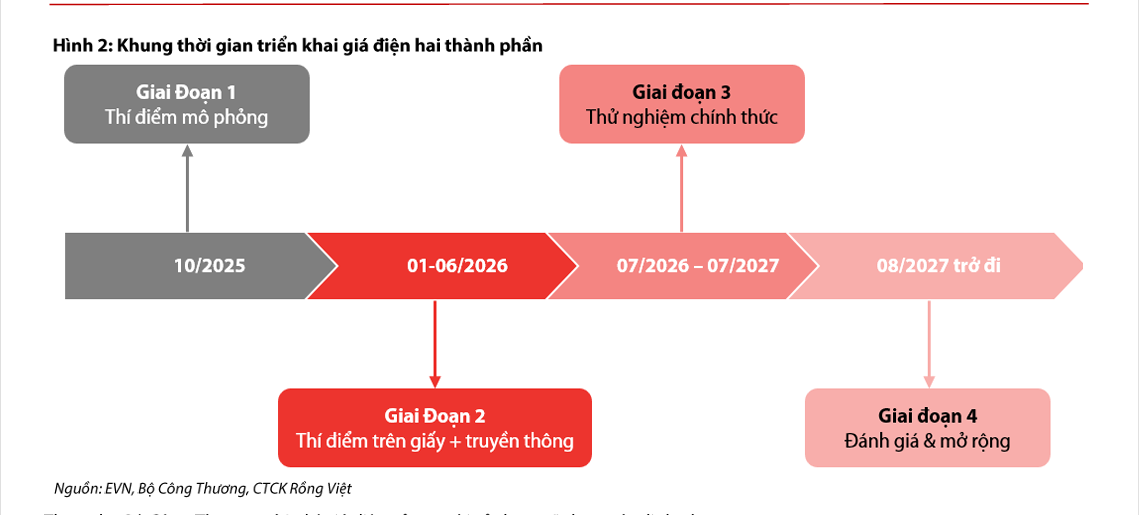 Theo đánh giá từ CTCK Rồng Việt, nhóm khách hàng công nghiệp có thể hưởng lợi với mức tiết kiệm chi phí khoảng 5% mỗi tháng nhờ tối ưu hóa công suất. Ngược lại, hộ dân cư có khả năng phải trả tiền điện cao hơn do đặc thù công suất cực đại cố định ở mức hạ áp8. Tuy nhiên, trong giai đoạn đầu, cơ chế này chỉ áp dụng cho khách hàng tiêu thụ lớn trên 200.000 kWh/tháng.